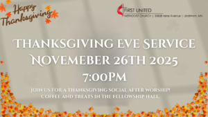 THANKSGIVING EVE – Worship 7:00pm (not usual 4:30 Wednesday time)